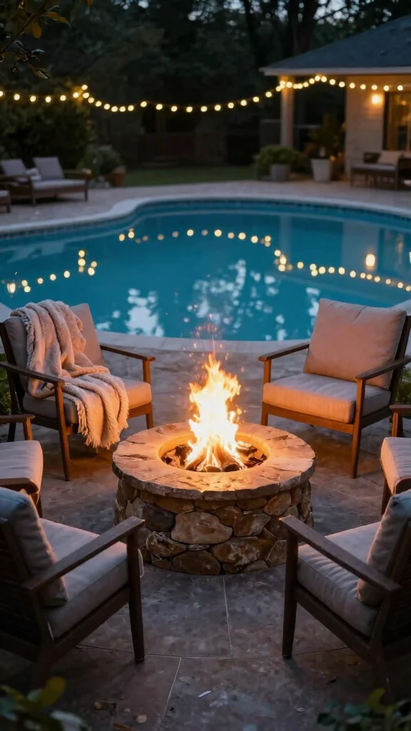 Ready to transform your poolside into a year-round gathering spot? Adding a cozy fire pit area can elevate the ambiance and make your space perfect for evening hangouts and s’mores under the stars.