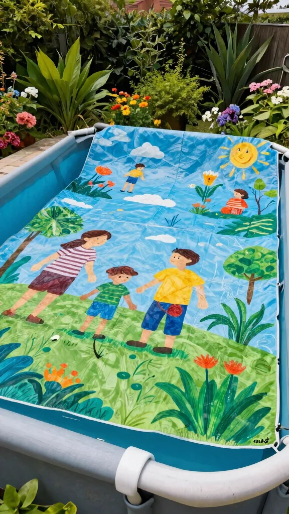 The design of your pool cover can be as simple or intricate as you wish—think of it as an outdoor art piece. Involve your family by painting or stenciling fun designs, making it a creative project with character.