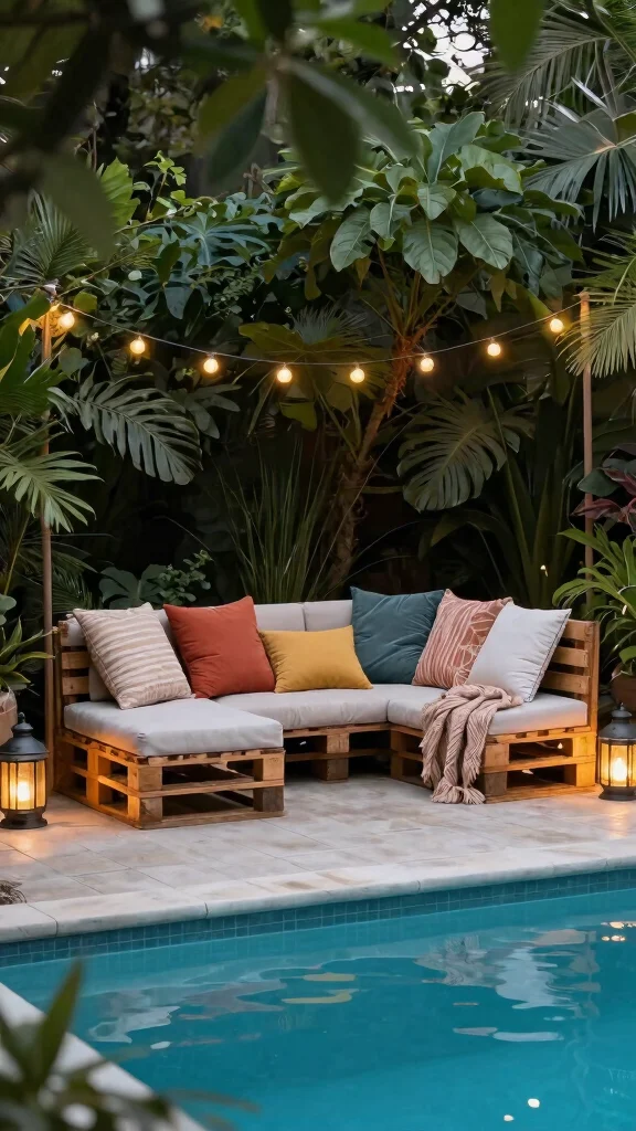 Are you looking to create inviting seating areas around your pool? Comfortable seating nooks enhance relaxation and entertainment in your outdoor space. You can build or repurpose furniture to suit your style, such as making benches from old pallets or adding affordable outdoor cushions for comfort.
