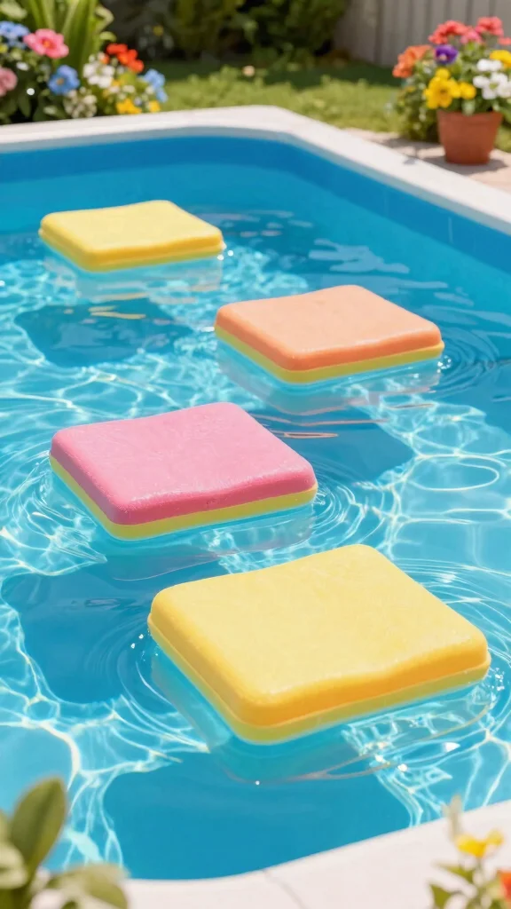 Looking for a fun and modern entry? Floating foam steps are a fantastic choice. They rise and fall with the water level, providing a unique look while ensuring safety. Made from lightweight, buoyant materials, they’re easy to handle and move. You can place them anywhere in your pool, adding versatility to your setup.