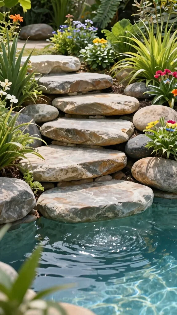 The durability of stone steps means they can withstand heavy use while looking stunning. Make sure the stones are sealed to prevent slipping and algae growth. Consider adding small planters or decorative elements for an extra touch of beauty.