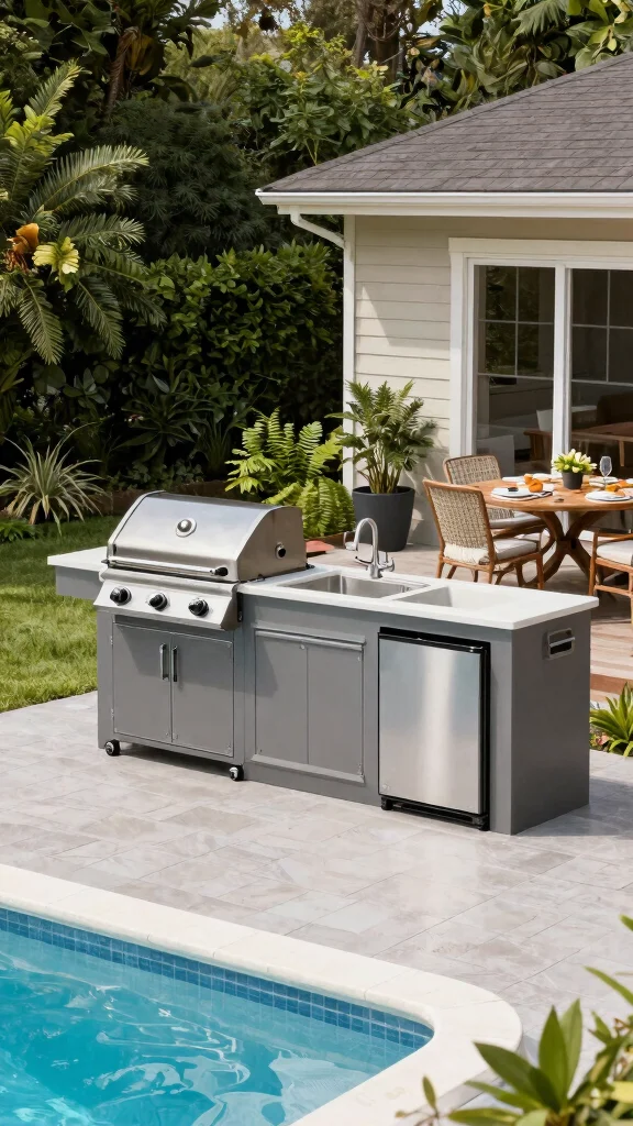 Elevate your outdoor lifestyle by adding an outdoor kitchen to your pool deck. This setup simplifies entertaining, allowing you to host gatherings effortlessly. Imagine a space equipped with a grill, sink, and mini-refrigerator, making your summer cookouts a breeze.