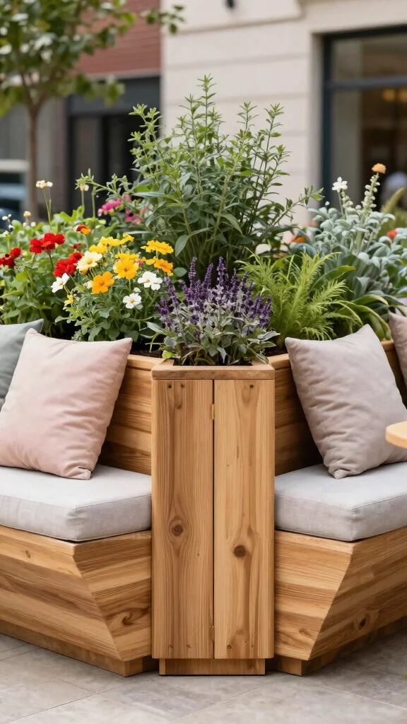 Turn every balcony into a cozy retreat with cedar planter boxes that include integrated seating. Choose weather-ready cushions, measure for sturdy benches, and you’ve got a relaxing space that doubles as a garden feature—simple, practical, and beautifully green.