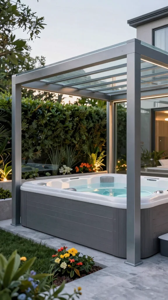 For a sleek, modern look, consider incorporating metal frames around your hot tub. This design not only adds a contemporary touch but also elevates the luxurious feel of your outdoor space. Materials like aluminum or stainless steel are strong yet lightweight, resistant to rust and weather, making them perfect for outdoor settings.