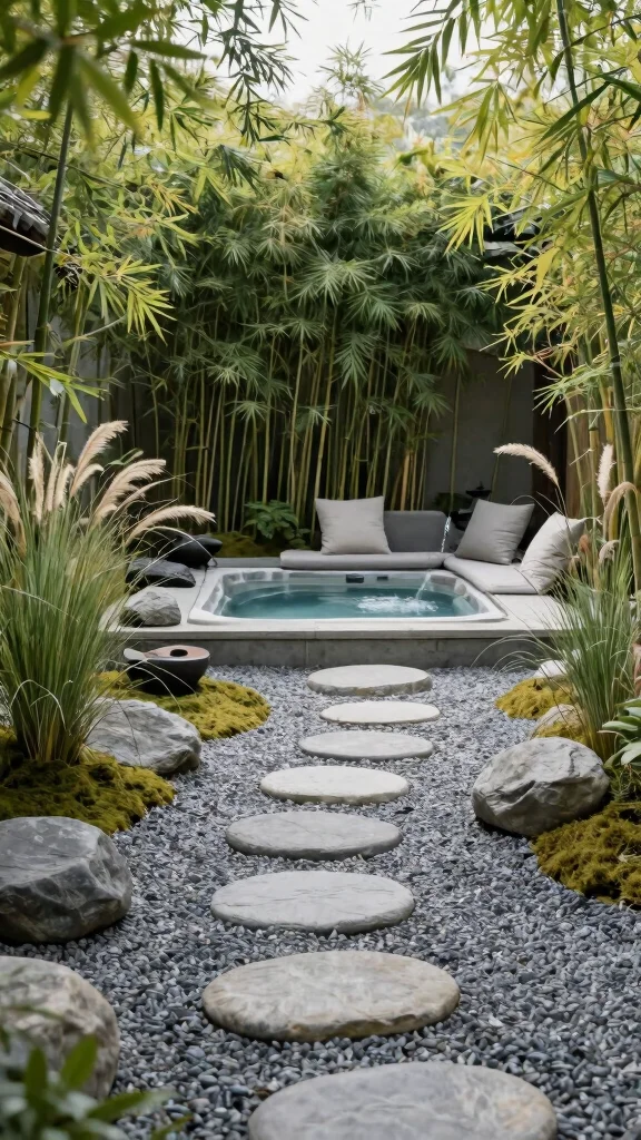 A Zen-inspired hot tub area can serve as a perfect retreat for meditation and unwinding amidst beautiful surroundings.