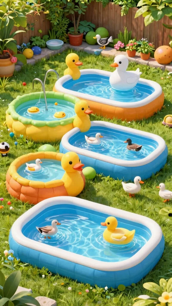 Select durable materials that can handle duck activity, and make sure to refresh the water regularly to maintain hygiene. A portable inflatable duck pool allows you to create a fun aquatic environment for your ducks, especially during hot weather.