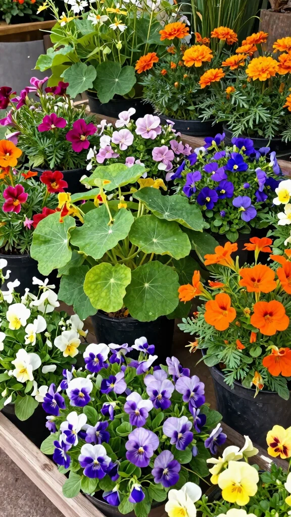 – Select vibrant flowers like nasturtiums, violets, and pansies for a splash of color.
