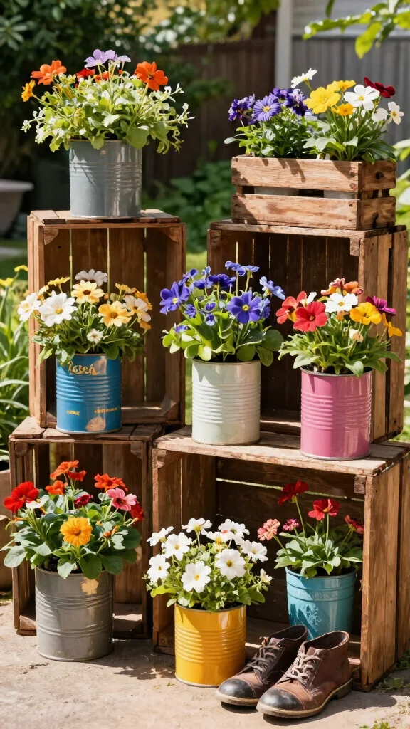 These recycled planters not only save money but also add character to your outdoor space.