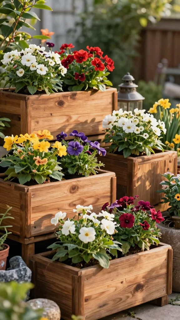 Rustic wooden planters not only enhance your garden’s charm but also provide a warm, inviting feel.