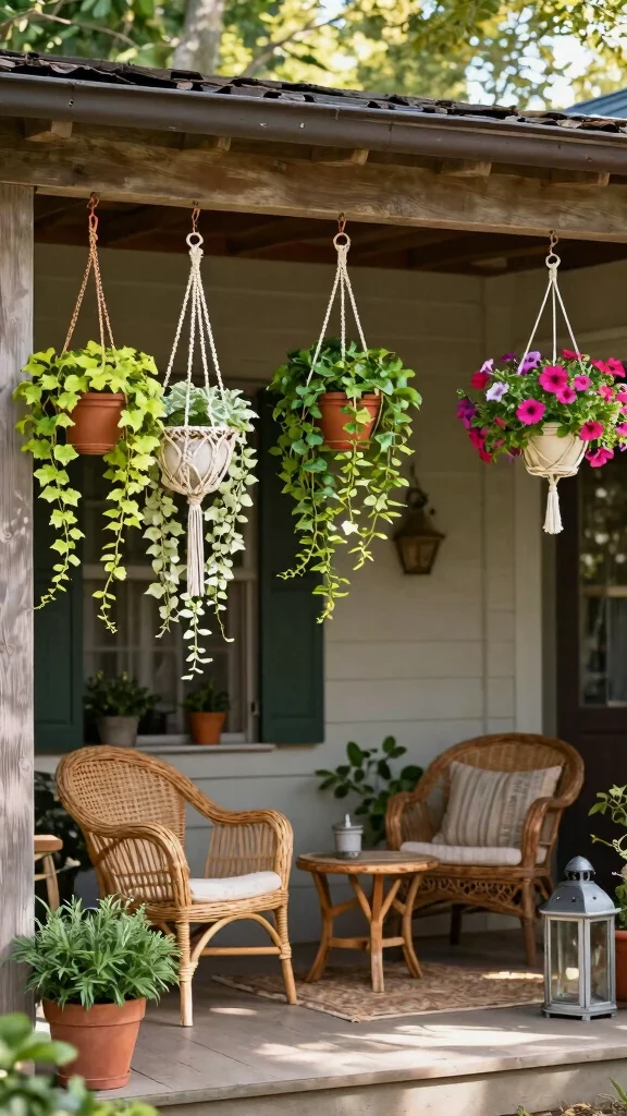 Utilize your porch space creatively with hanging planters! These elevate your plant displays, adding a dynamic layer to your entrance. Use macrame hangers or simple hooks to suspend planters at varying heights for a stunning visual effect.