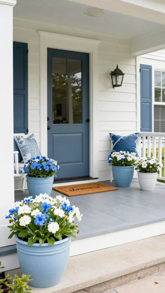 Create a unified aesthetic by choosing a color theme for your planters. Whether you prefer soft blues and greens or bold reds and yellows, a cohesive palette can elevate your porch’s charm without major renovations. Painting planters or selecting flowers that match your theme is a simple yet effective strategy.