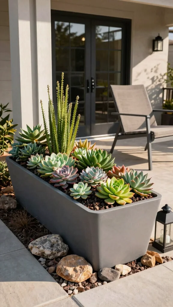 Opt for succulents in your planters to enjoy a beautiful display with minimal upkeep, perfect for busy gardeners.