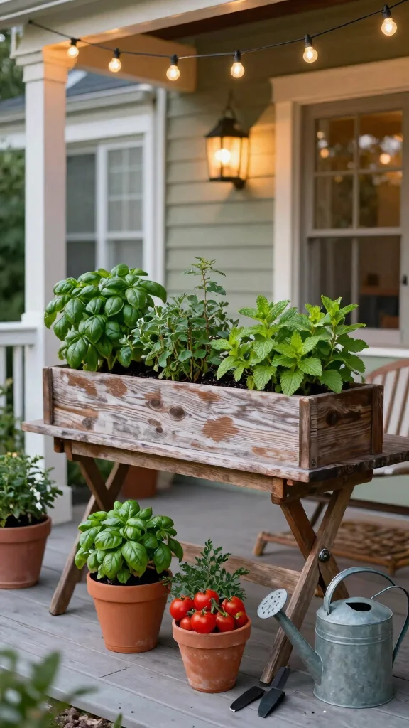 Paint the furniture to match your style or leave it rustic for a vintage vibe. Select plants that cascade beautifully for an enchanting effect.