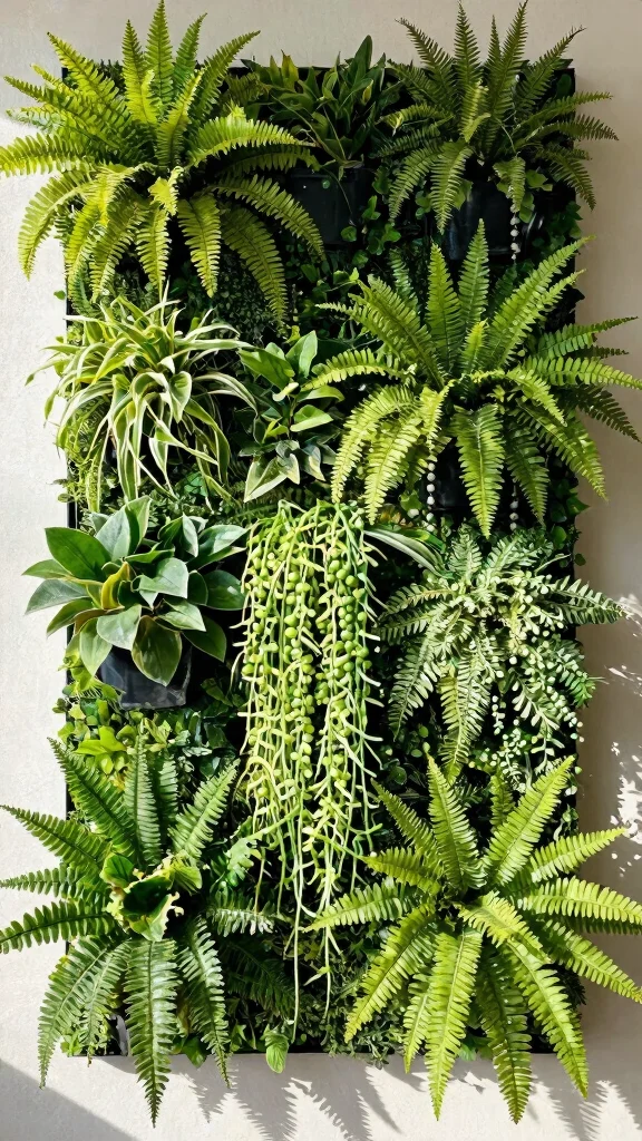 Make the most of small spaces with a stylish vertical garden featuring sun-loving plants. Use wall planters or stacked pots to create a stunning display in limited areas. Choose plants like variegated ferns, string of pearls, and sansevieria to craft an eye-catching vertical arrangement.