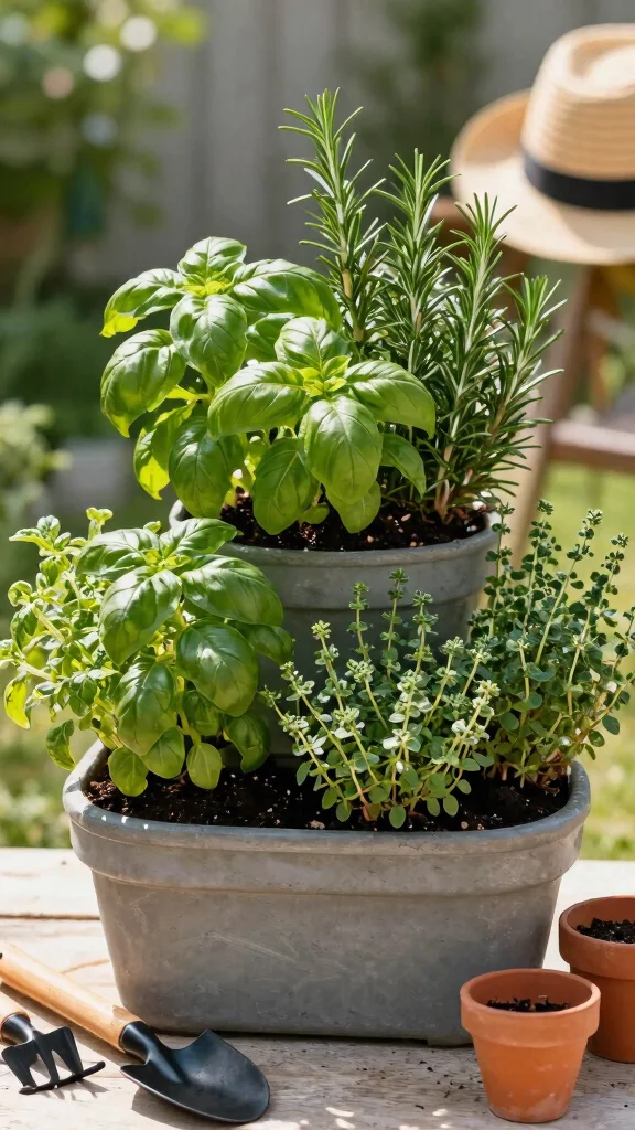 Mix various herbs for a fragrant and colorful display. Consider using tiered planters or hanging baskets to save space and add visual interest.