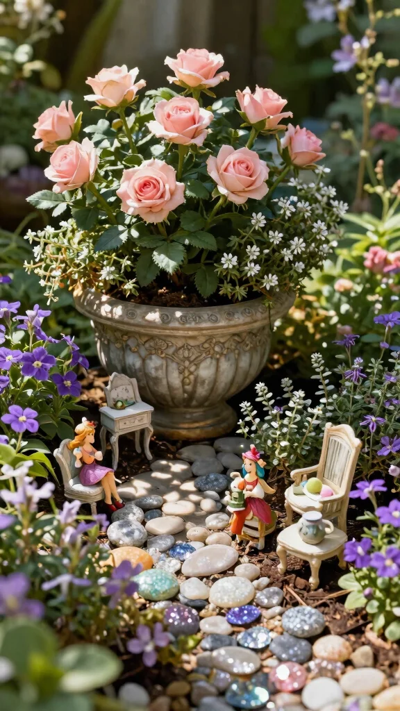 Craft a charming fairy garden that combines full sun plants with delightful decor. Use smaller blooms like miniature roses, lobelias, and creeping thyme for a lush, enchanting atmosphere. Add whimsical touches like fairy figurines or tiny furniture to spark imagination.