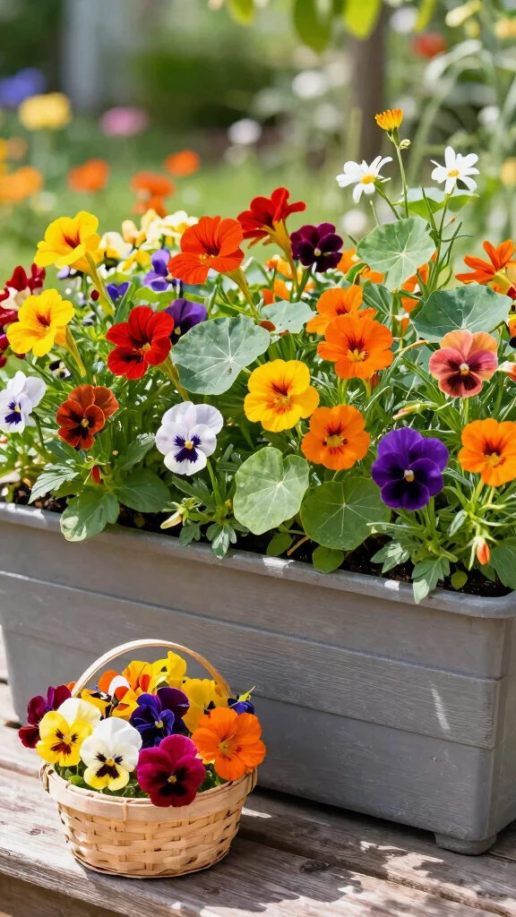 Add both color and flavor to your summer dishes with an edible flower planter. Flowers like nasturtiums, pansies, and calendula not only brighten your garden but can also enhance your culinary creations.
