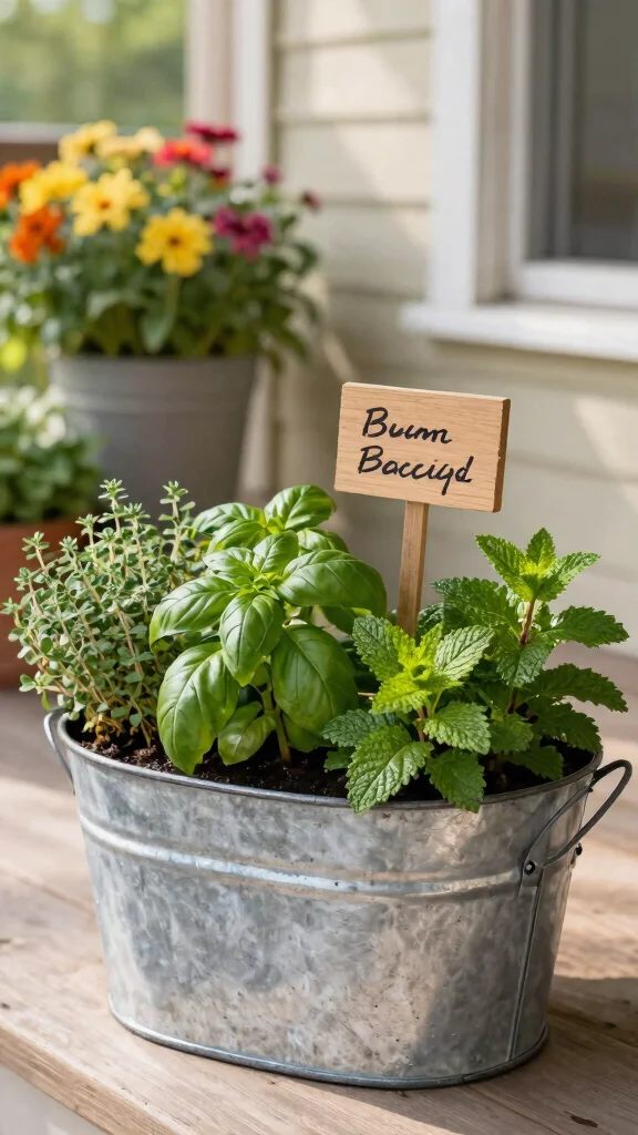 Imagine stepping outside to snip fresh herbs for your meals, all grown right on your porch or balcony. Creating a herb garden in a galvanized tub is not only practical but also brings delightful aromas to your space. Opt for a medium-sized tub filled with a rich blend of potting soil and compost, ensuring your herbs thrive with nutrients. You can plant vibrant basil, aromatic rosemary, refreshing mint, and flavorful thyme, giving you easy access to culinary treasures.