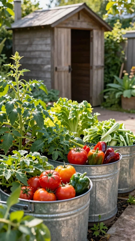Fun fact: A 24-inch galvanized tub planter can fit 2 cherry tomato plants and 3 peppers in a sunny spot. With rich soil and proper drainage, you’ll harvest fresh veggies right at elbow height.