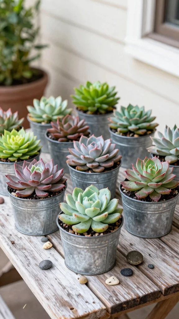 Embrace the trend of succulents and display them beautifully in charming galvanized tubs. Use smaller tubs to showcase a delightful variety of succulents, where their unique shapes and colors will pop against the rustic metal. Start by layering the bottom with stones for drainage and then add cactus soil to keep these drought-loving plants happy.