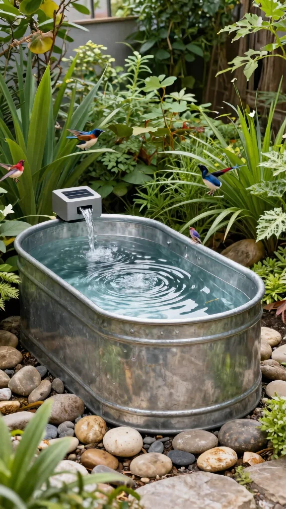 Turned into a water feature, your galvanized tub becomes a tiny oasis that invites birds and dragonflies. Bury it halfway, add water lilies, and a solar pump—the garden feels calmer, more practical, and wonderfully alive.