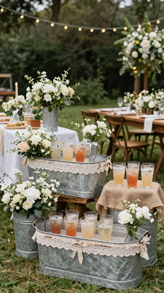 Position these tubs in various spots around your venue to create an enchanting, cohesive look. This vintage aesthetic not only beautifies the event but also offers an eco-friendly decoration option that guests will love.