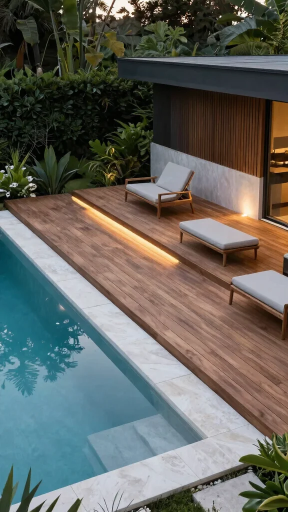 This wellness deck not only encourages relaxation but integrates mindfulness into your outdoor living space, making your pool area a holistic sanctuary.