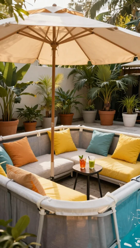 Transform your half-deck into a cozy lounge area that invites relaxation with its sunshade. Picture yourself sinking into plush cushions while sunlight filters through a stylish canopy or umbrella. This design emphasizes comfort and shade, allowing you to enjoy your pool without the worry of sun exposure.