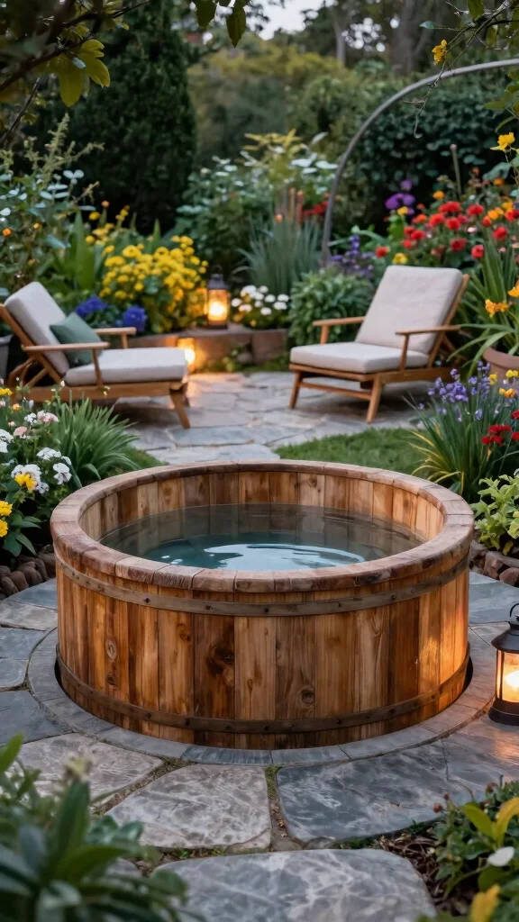 This setup encourages a tranquil experience, allowing you to savor the peace of your garden. Adding soft lighting can turn the area into a magical spot for nighttime soaks, emphasizing relaxation and seclusion.