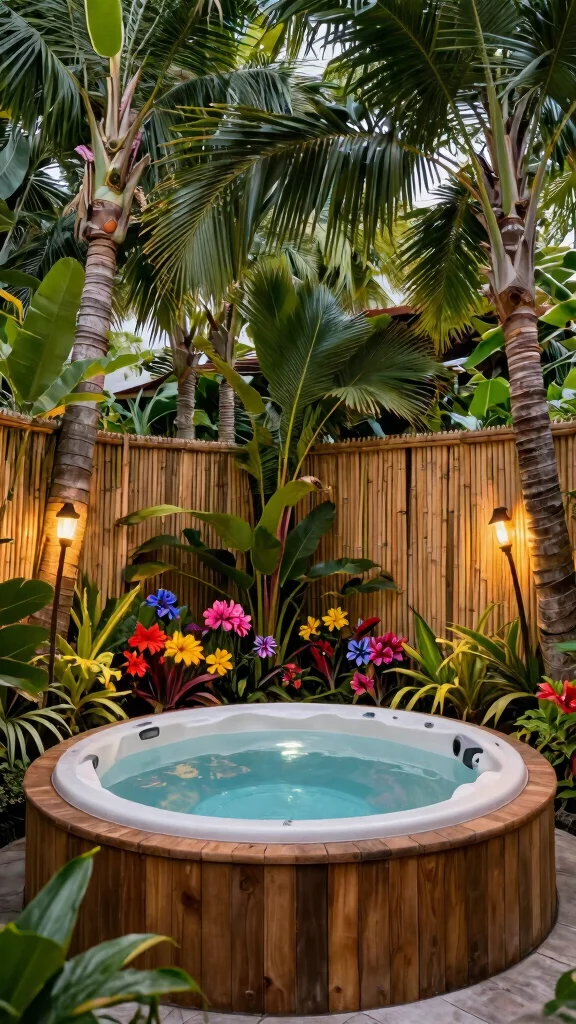 – Surround the hot tub with tall tropical plants for added privacy.