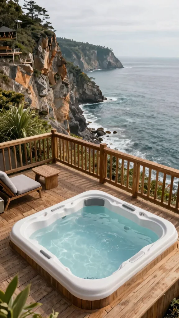 Positioning the hot tub for optimal views and sunset scenes will enhance your experience. Keep your lighting subtle to maintain a peaceful atmosphere.