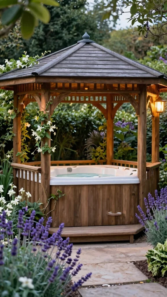 Fun fact: a gazebo around your hot tub can cut wind exposure by up to 60% and boost usable season by about a month. Build with natural woods and plant echoes to turn hot tub garden ideas into your cozy, year-round retreat.