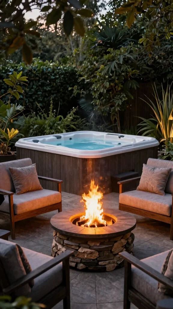 Combining a fire pit with your hot tub creates a dynamic space perfect for entertaining. Place the hot tub near a fire pit, surrounded by inviting seating, allowing for diverse activities and relaxation.