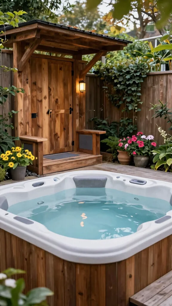 These options fit well with outdoor spa designs, landscaping with water features, and budget-conscious hot tub garden ideas.