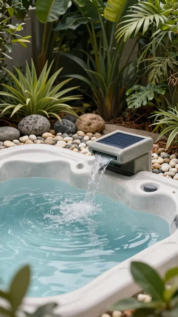 Introduce a touch of tranquility to your hot tub patio with affordable water features like a small fountain or DIY pond. The gentle sound of flowing water enhances your relaxation experience, drowning out unwanted noises. Small solar fountains can be found at garden centers or you can create your own using a waterproof basin and pump.