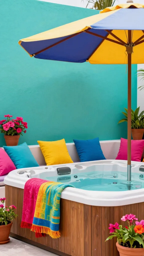 With bold colors, your hot tub patio becomes a lively getaway that leaves a lasting impression.