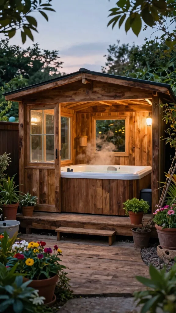 Transform your hot tub shed into a serene sanctuary, allowing for rejuvenation and peaceful reflection in a calming environment.