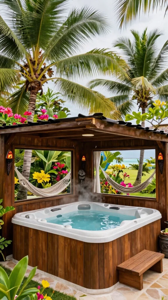 Transform your backyard into a tropical paradise with a hot tub shed that captures the essence of a beach retreat. Utilize natural materials and lively colors to create a serene escape right at home.
