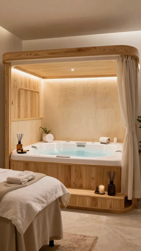 Use soft tones like blues and greens to promote tranquility throughout the space. Consider adding a massage table or wellness area for an enhanced spa experience. Utilize essential oil diffusers to fill the air with calming aromas.
