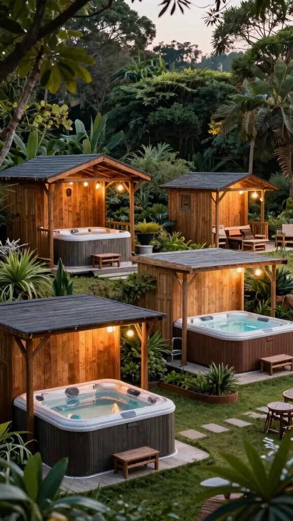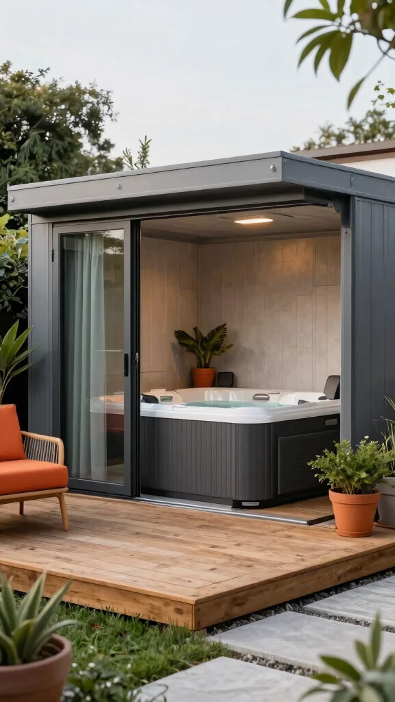 Prioritize climate control and humidity management: install solid insulation, a reliable heater or heat pump, and a well-sealed shell so the hot tub stays comfortable in winter and summer. Choose slip-resistant, moisture-friendly flooring with good drainage, and add mood lighting and a compact sound system for ambiance. A small changing area or towel nook adds convenience, while smart ventilation helps reduce humidity around the tub. All of this supports a seamless outdoor retreat ideas vibe and year-round relaxation.