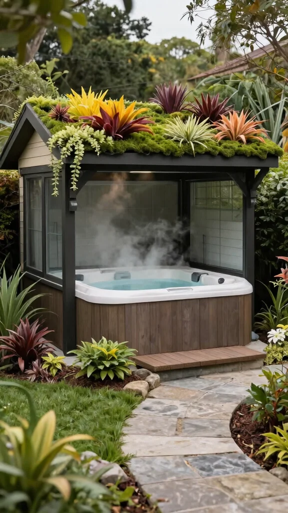 Bring nature to your hot tub shed with a stunning green roof. This eco-friendly feature enhances insulation while supporting local wildlife and reducing your ecological footprint. A green roof can blend beautifully with your garden, showcasing plants that thrive in your climate.