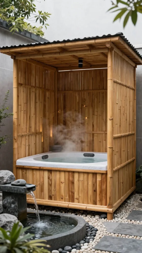 Create a peaceful escape with a Zen-inspired hot tub shed that embodies tranquility. This design focuses on natural materials and elements typical of Japanese aesthetics, promoting relaxation and mindfulness.