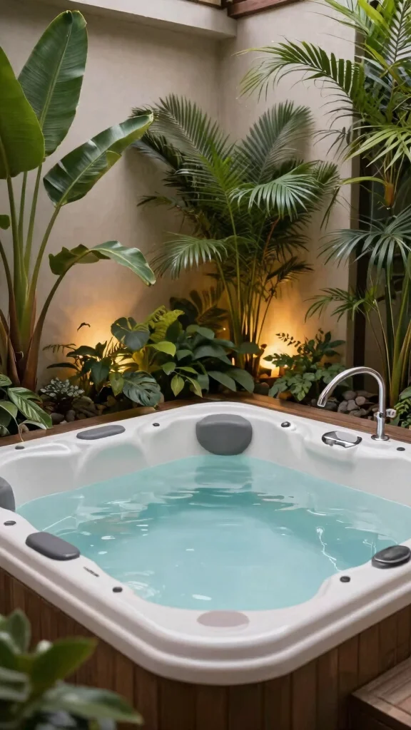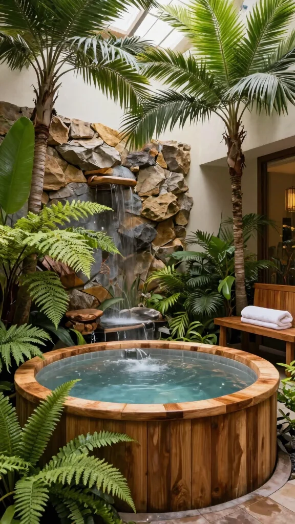 – Incorporating plants like ferns and palms around your indoor hot tub can create a lush tropical retreat that enhances relaxation.