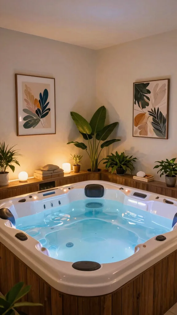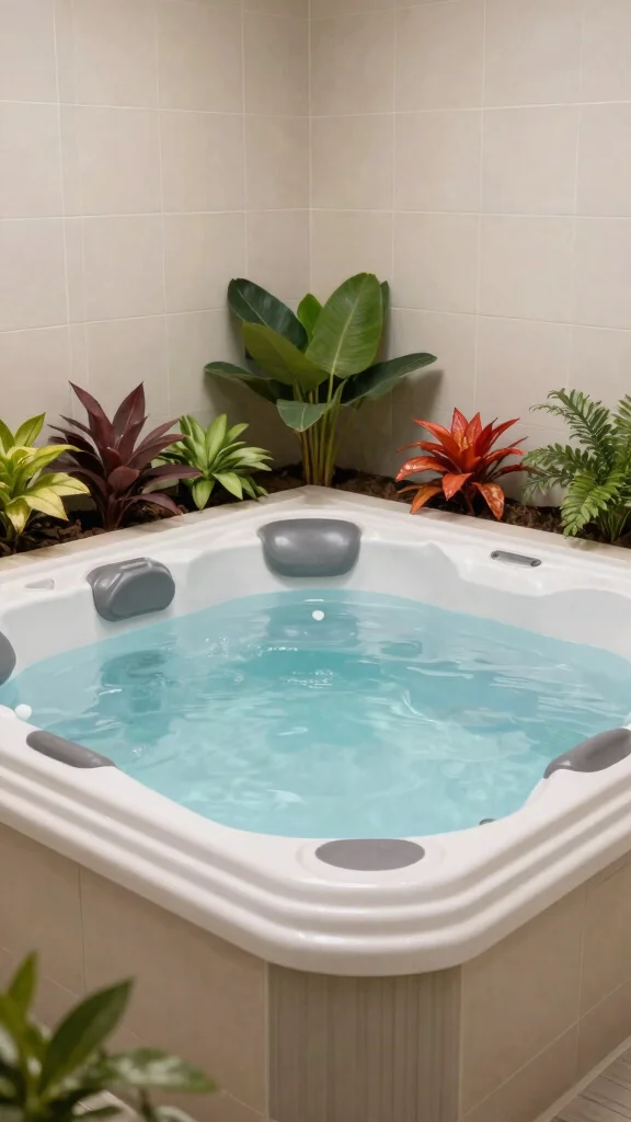 Fun Fact: Using a cohesive palette of 3-4 colors can boost perceived calm in an indoor hot tub area by up to 25%. Blues, greens, and neutrals unify tiles, decor, and plants for a serene, spa-like retreat you can refresh with simple plant pops.