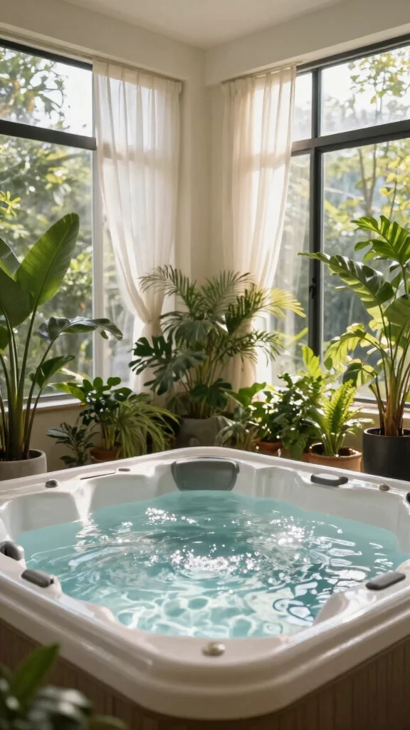 Place them where they won’t be sprayed directly and ensure adequate light. Grouping plants helps create a calming, natural backdrop for your private year‑round indoor oasis while supporting a relaxing atmosphere for your indoor hot tub experience.