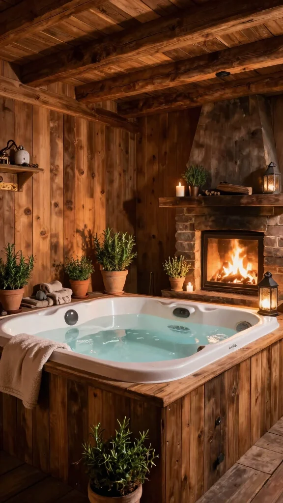 Bring the warmth of a rustic cabin into your home with a hot tub surrounded by cozy wood-paneled walls. This inviting setup can be complemented by a fireplace, providing warmth during chilly months. Surround your tub with aromatic herbs like rosemary or thyme, which thrive in humid conditions and add delightful scents to your relaxation space.
