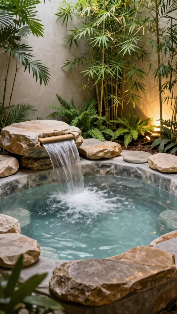 To elevate the experience, think about adding a natural stone feature wall. This can mimic the beauty of the outdoors and make your space feel more cohesive. A small waterfall feature can also enhance relaxation with its soothing sounds.