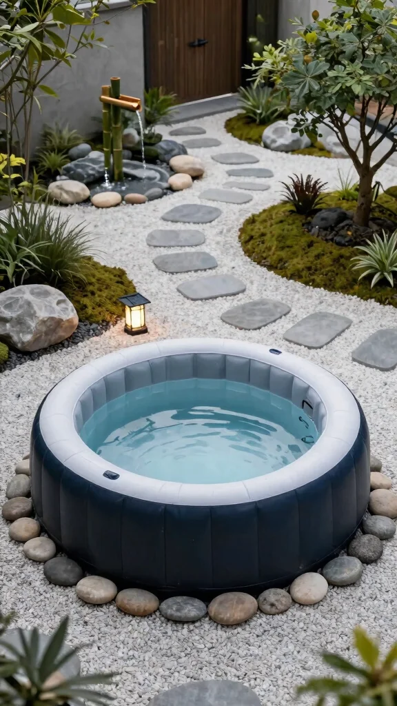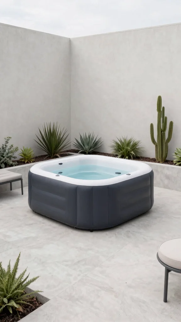 Fun fact: A minimalist layout in inflatable hot tub garden ideas can make the space feel 15–20% larger with neutral tones and clean lines. Add a slim concrete deck and a few well-chosen plants to keep the area serene and easy to maintain.