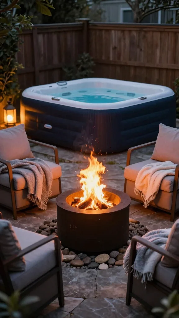 Fun fact: among inflatable hot tub garden ideas, a cozy fire pit setup can boost relaxation by 40%, not just warmth. Place the pit safely, add lanterns and blankets, and you’ve got a share-worthy evenings hangout.