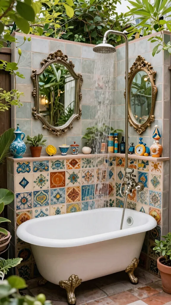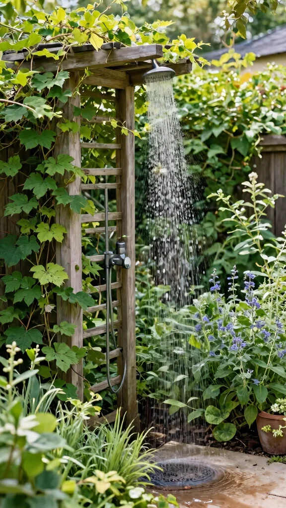 Consider using vertical gardens or trellises to grow climbing plants like jasmine or ivy. These plants not only mask the shower area but also fill the space with delightful scents. You can even add edible herbs for a functional twist.